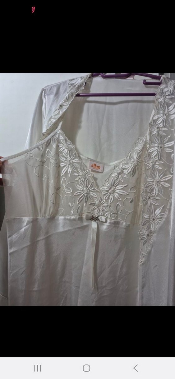Kadın geceliği, işlemeli çiçek desenleri ve kolsuz tasarımıyla bol kesimdir. Parlak beyaz kumaş ve uzun boyuyla vintage bohem tarzını yansıtır. Bohca alışverişinde almıştık beden L yazıyor ama daha büyük xl ve xxl uygun olur Boynerden aldık Altan marka