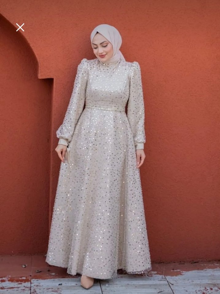 İşlemeli Beyaz Uzun Kollu Tesettür Abiye