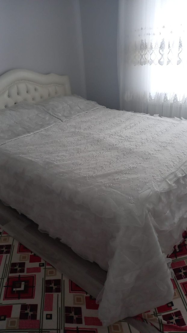 İşlemeli desenlere sahip beyaz yatak örtüsü, hafif ve zarif bir görünüm sunar. Yumuşak dokusu ile yatağı tamamen kaplar. ️
