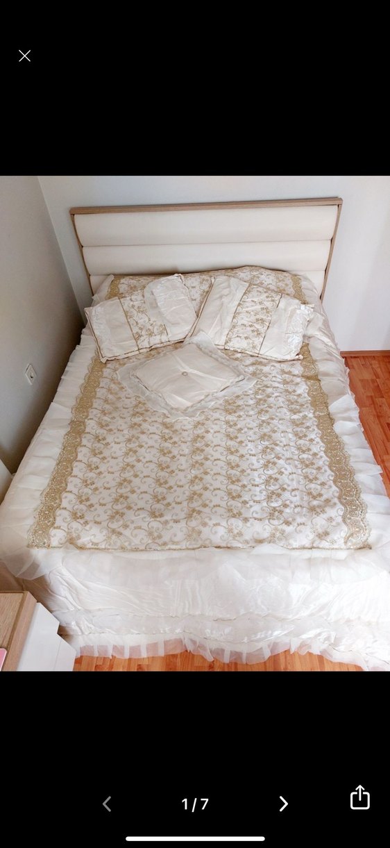 İşlemeli Beyaz Yatak Örtüsü