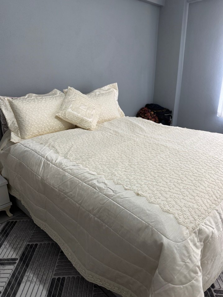 İşlemeli Beyaz Yatak Örtüsü