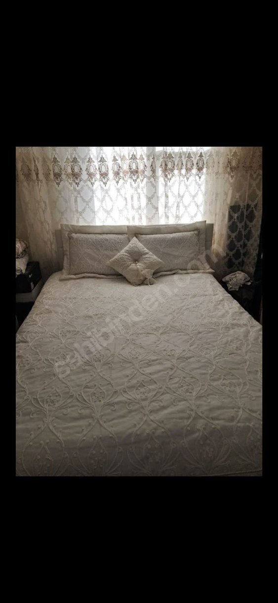 İşlemeli desenlere sahip beyaz yatak örtüsü, yumuşak dokusu ve dekoratif dikişleriyle şık bir görünüm sunar. Çok az kullanılmıştır. Pazarlık payı vardır.