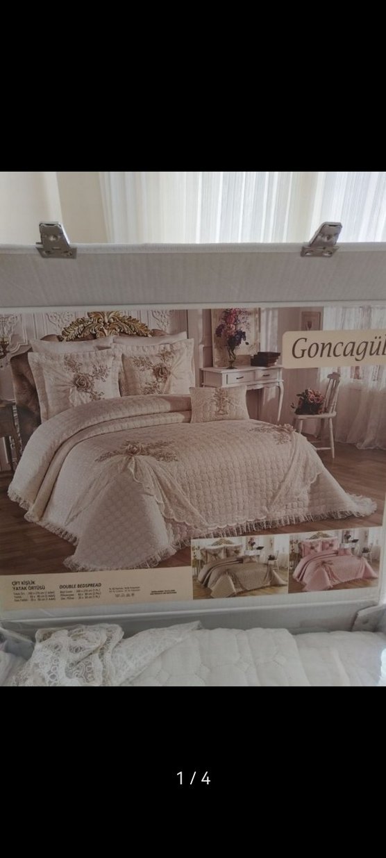 İşlemeli beyaz yatak örtüsü ve , yumuşak ve hafif kumaştan üretilmiştir. Set, uyumlu yastık kılıflarını içerir.