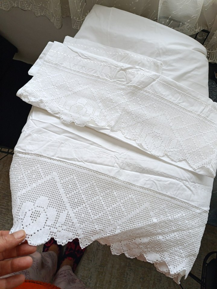 ıkı adet yastık kılıfı ve dantelli çarşaf