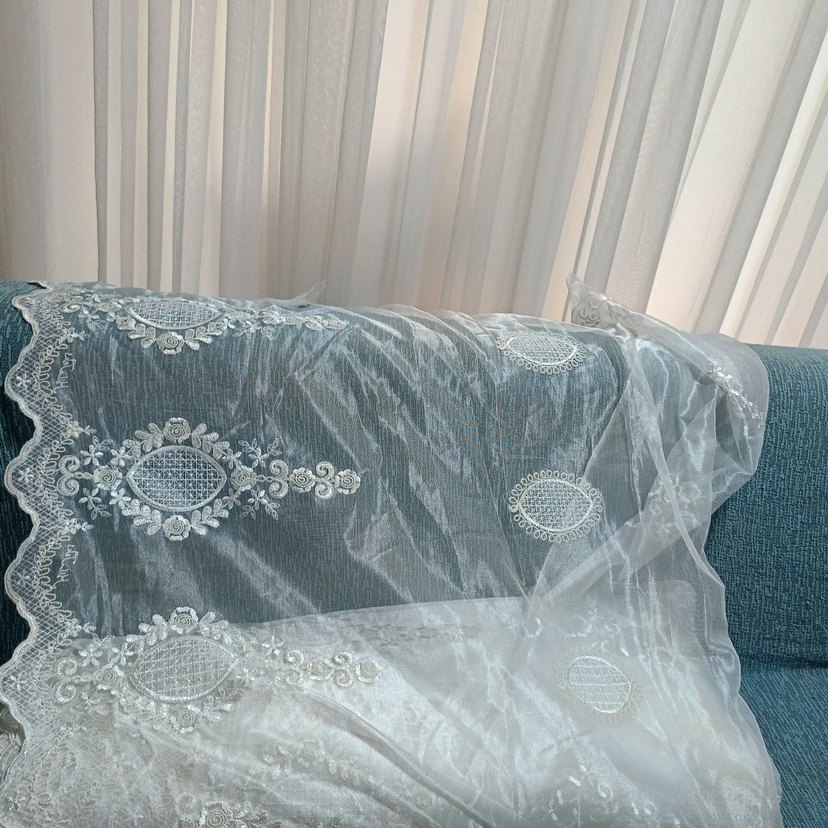 işlemeli desenlere sahip beyaz bohem perde, hafif ve şeffaf yapısıyla mekana zarif bir dokunuş katar.