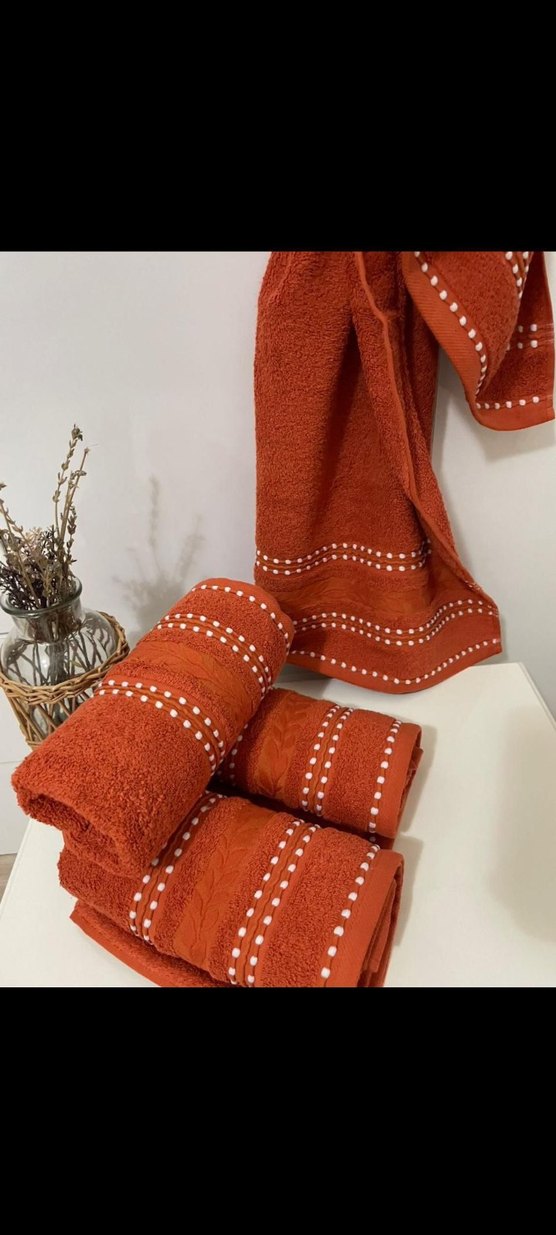 Parlak kahverengi, işlemeli ve bohem tarzda tasarlanmış havlu, banyonuza dekoratif ve yumuşak bir dokunuş katıyor.