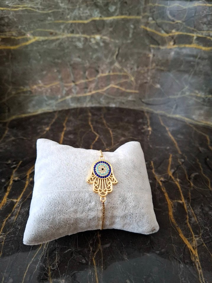 İşlemeli Boncuklu Altın Renkli Bohem Bileklik