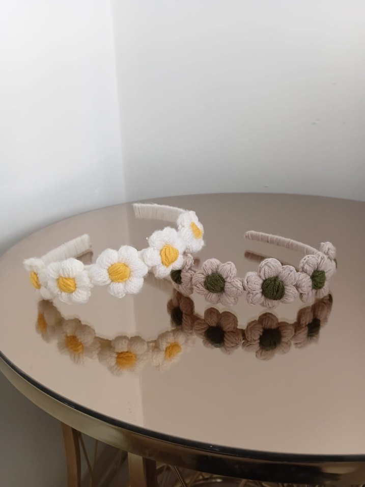 Pastel renkte işlemeli çiçekler ve boncuk detaylı bohem tarzda çocuk saç bantları. Retro ve hippie görünüme uygun.