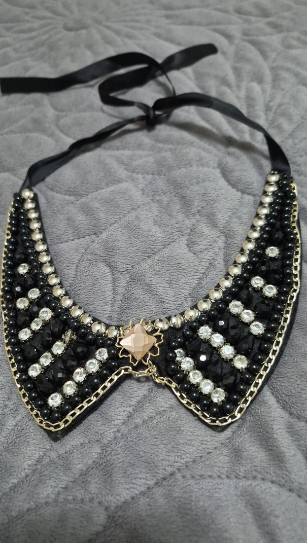 Siyah midi kolye, işlemeli boncuk detayları ve gotik, gösterişli tarzıyla dikkat çekiyor. Ayarlanabilir uzunlukta ve kurdele bağlamalı, günlük ve gece kullanıma uygun.(Yurtdışından Almıştım) ✨
