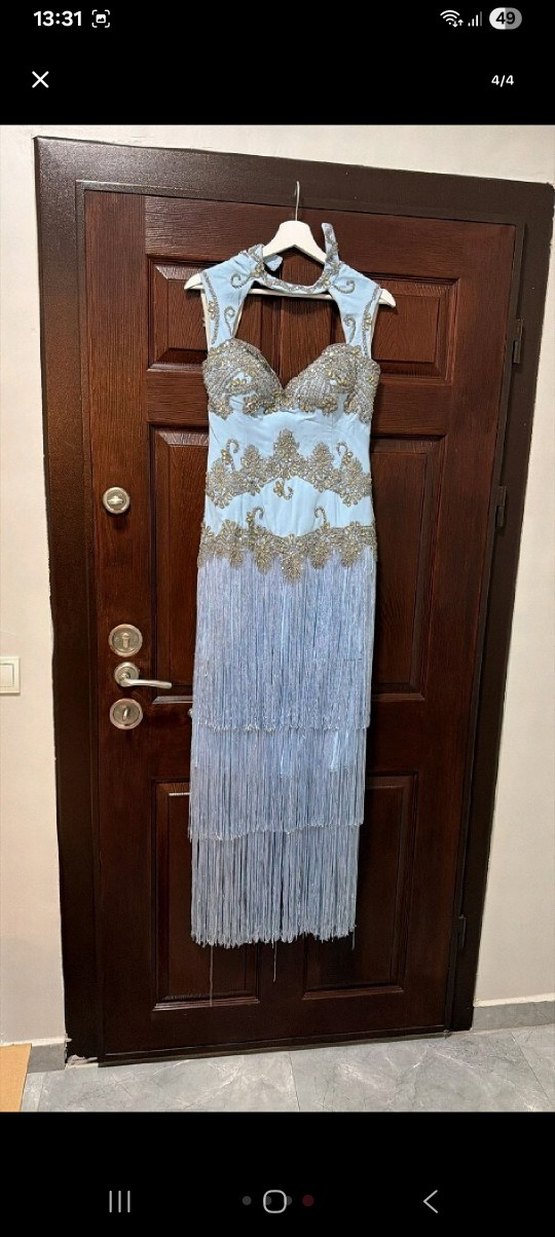 İşlemeli Boncuklu Uzun Bohem Abiye Elbise