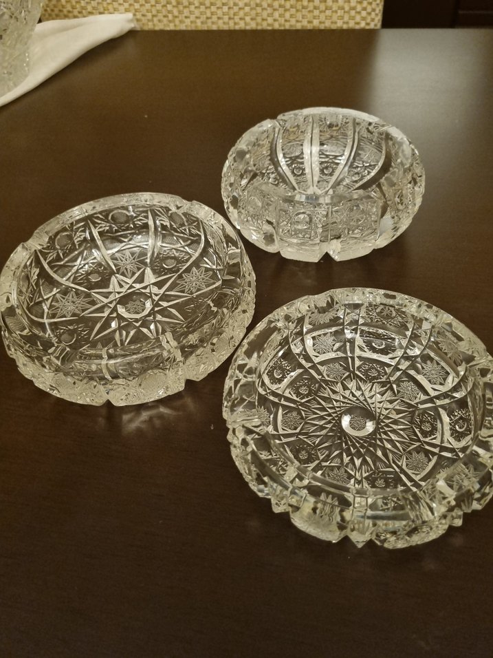 İşlemeli Cam Dekoratif Tabaklar 3lü antika kristal