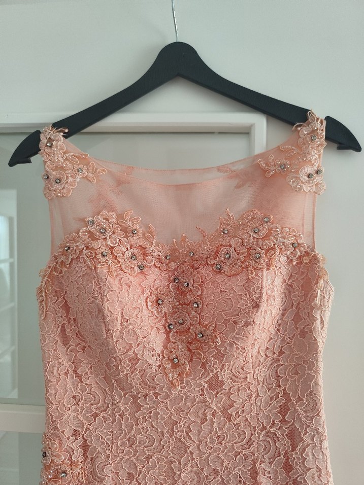 İşlemeli Dantel Somon Uzun Abiye Elbise