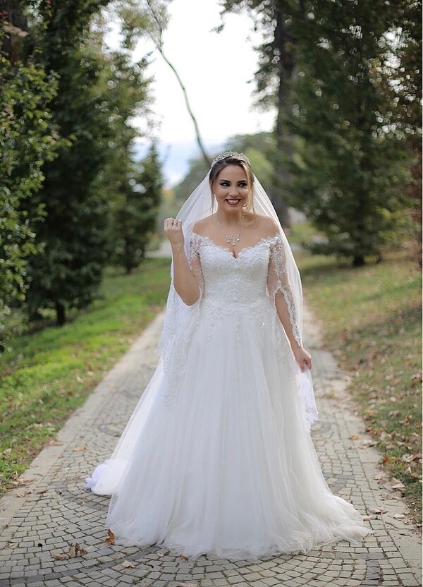 Ürünün kullanımdan kaynaklı deformesi mevcuttur. Bel çevre ölçüsü 80cm, kol uzunluğu 78 cm, boy uzunluğu 147cm, koldan kuyruğa kadar 210 cm, duvak 250 cm.