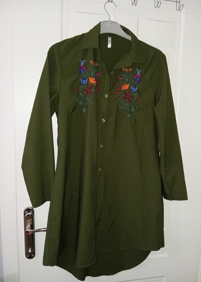 Haki yeşil işlemeli gömlek iki koltuk arası 50cm boy 84cm