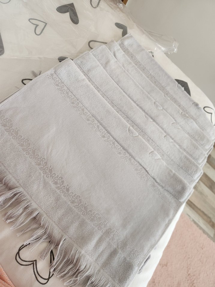Gri işlemelerle püsküllü kenarlara sahip şık bir havlu. Etamin el havlusu ihtiyaçtan dolayı satılıktır hiç kullanılmamıştır işlemek için aldım fakat işleyemedim poşetli şekilde saklıyordum eğer fazla alım olursa indirim yapabilirim