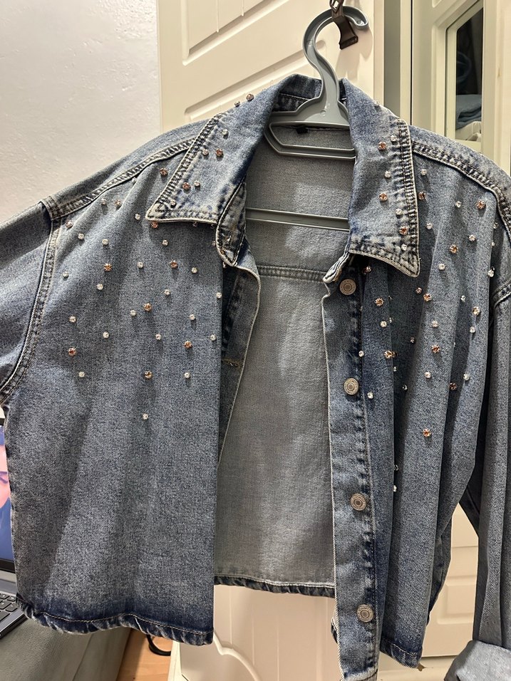 İşlemeli Gri Denim Kadın Ceket