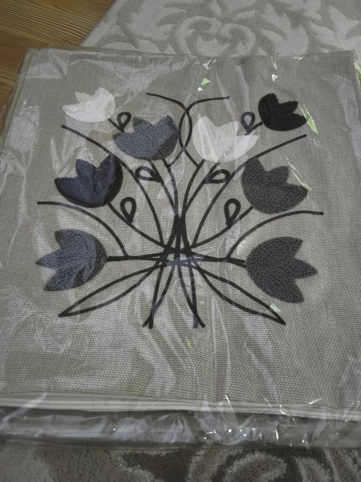 Gri tonlarda işlemeli çiçek deseni ve bohem kırlent 2 adet