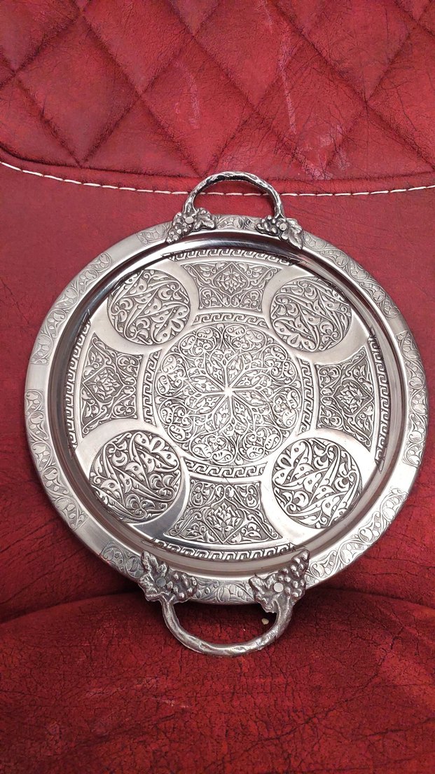 . ️kaliteli gümüşlük 24 cm ebatında kaliteli bi üründür işlemeli üründür 5 sene önce parlatılan üründür kararma olmamışdır sayfamda başka ürünlerde mevcuttur