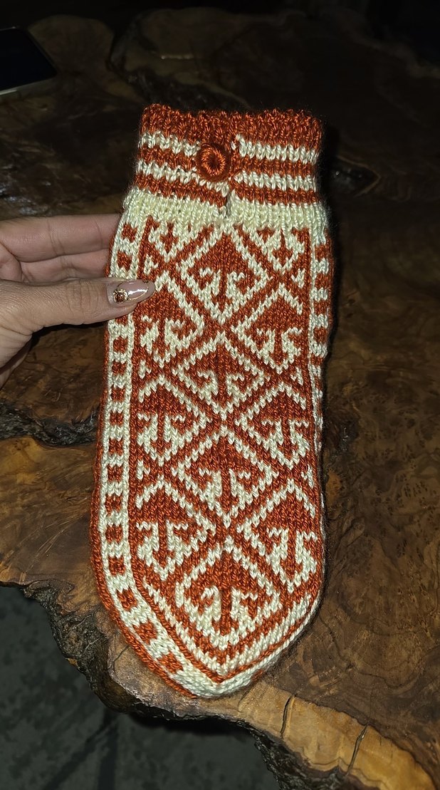 İşlemeli Kahverengi Karadeniz Çorap (HandMade)