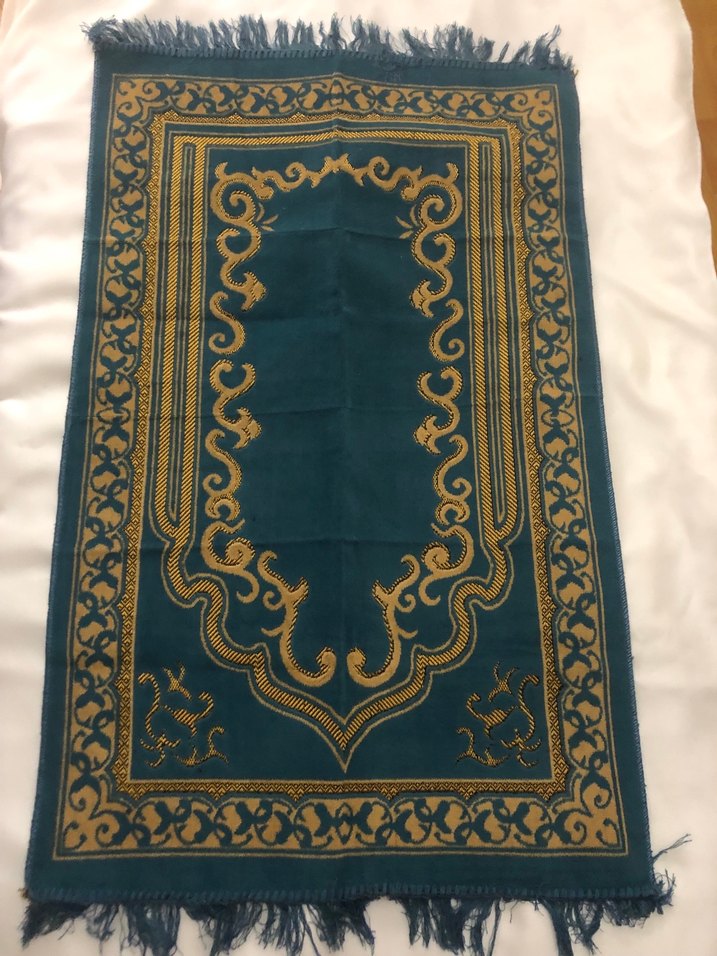 İşlemeli Koyu Turkuaz Halı Seccade