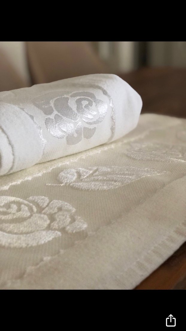 İşlemeli çiçek desenleriyle klasik tarzda, hafif ve şık krem havlu. Kadife 90/50 1. Kalite