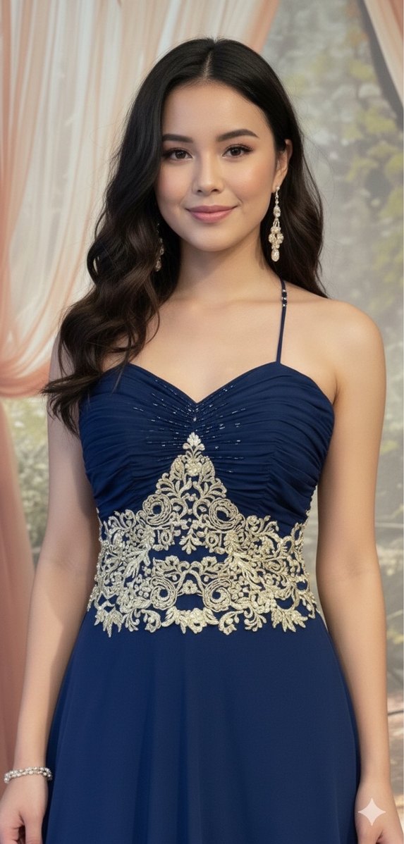 Lacivert renkli, straplez kesim, işlemeli ve boncuk detaylı, belden oturan uzun abiye elbise. 38/40 bedene uygundur. İster bindallı ister abiye olarak kullanabilirsiniz. Ürün sıfır ve etiketli kargo paketlemesini mecbur streçleme yapıyorum ki kargo aktarmada atıyorlarlar koli yaptığımda koli yırtılıyor ürün hasar görüyor bilginiz olsun. İade yoktur