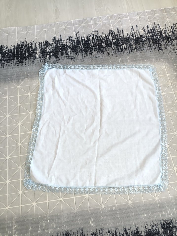 Kenarları işlemeli, sade ve klasik tasarımlı beyaz. Açık gri işlemeleri kumaşa zarif bir detay katıyor.