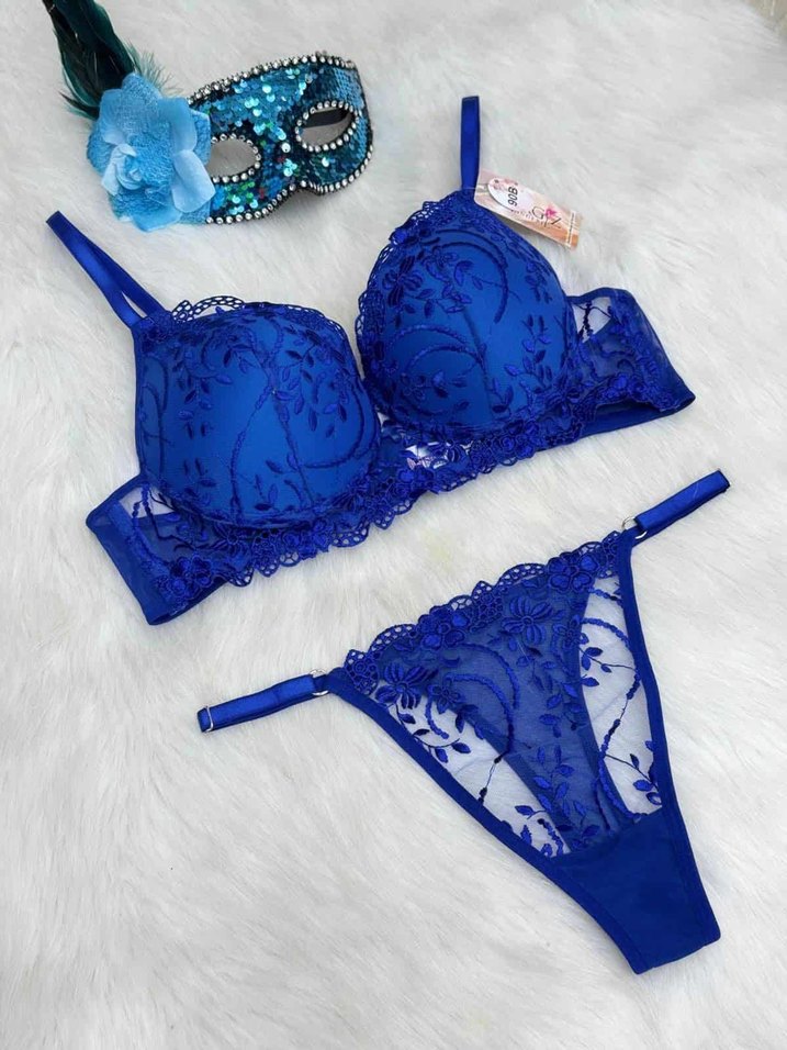 İşlemeli renkli detaylara sahip mavi bohem tarzda kısa uzunlukta sütyen ve külot takımıdır. Rahat ve şık bir tasarım sunar.
