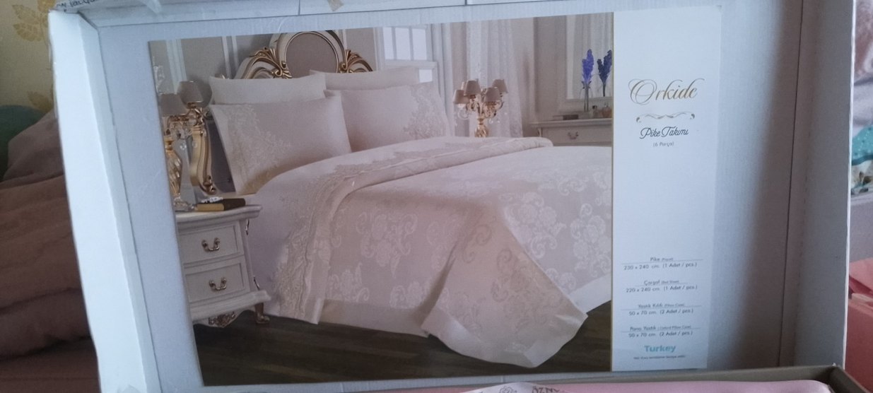 İşlemeli desenlere sahip beyaz nevresim ve çarşaf takımı, yatak odanıza zarif bir dokunuş katıyor. Açık renk, huzurlu bir ortam yaratır. ️