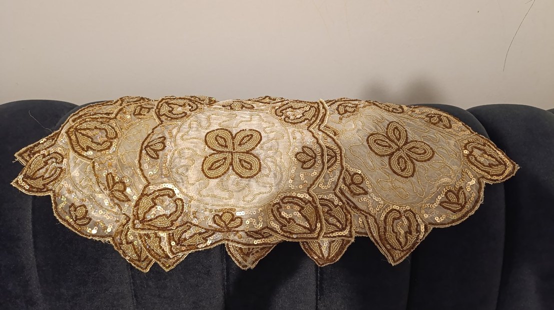 Parlak altın işlemelerle süslenmiş geleneksel tarzda salon takımı, masanıza şıklık katar. ✨