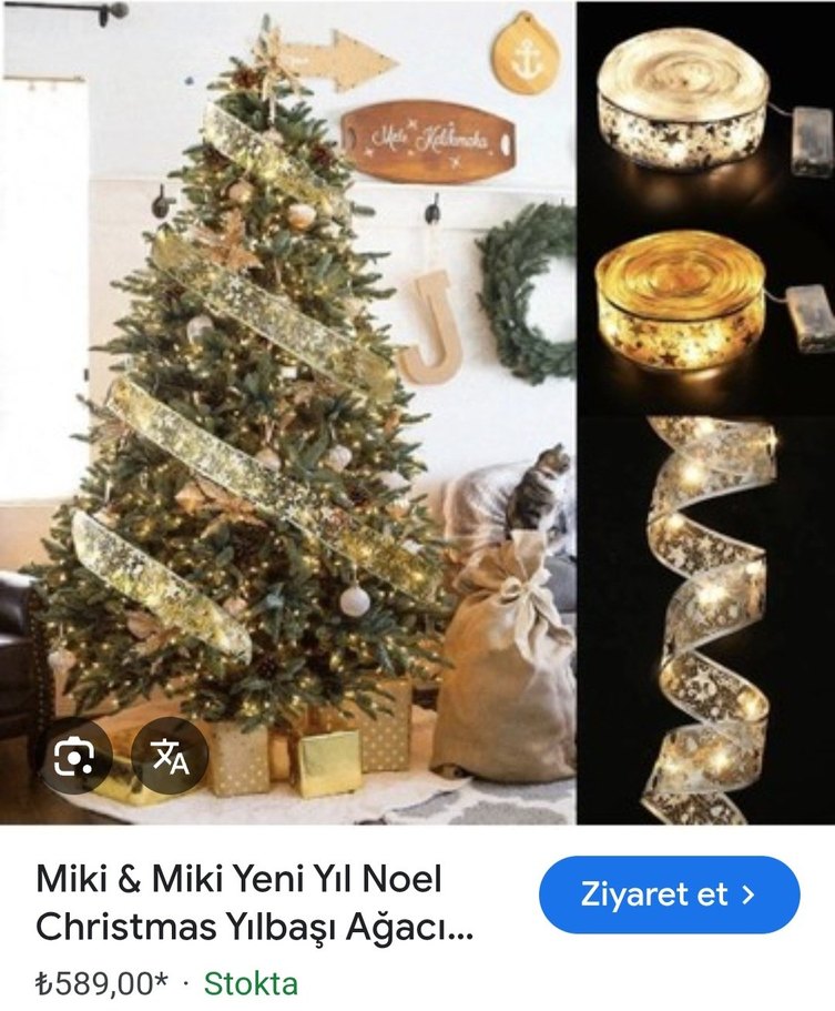 İşlemeli Parlak Altın yılbaşı ağacı kurdale