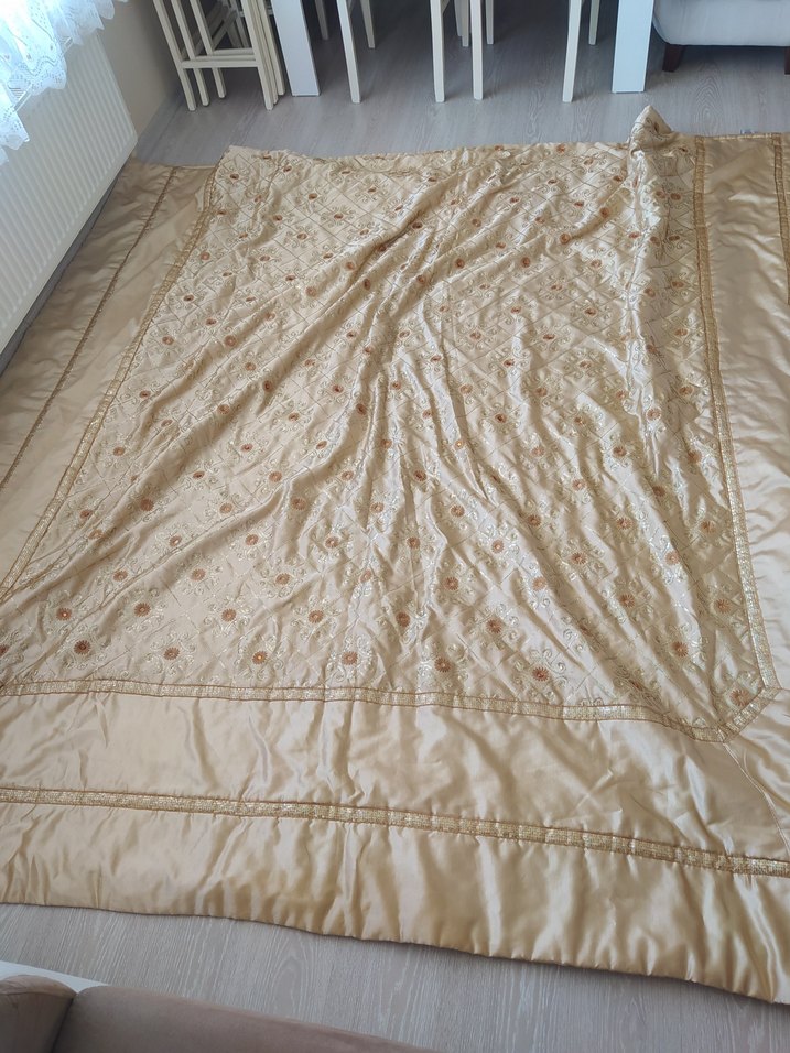 İşlemeli Parlak Bej Yatak Örtüsü