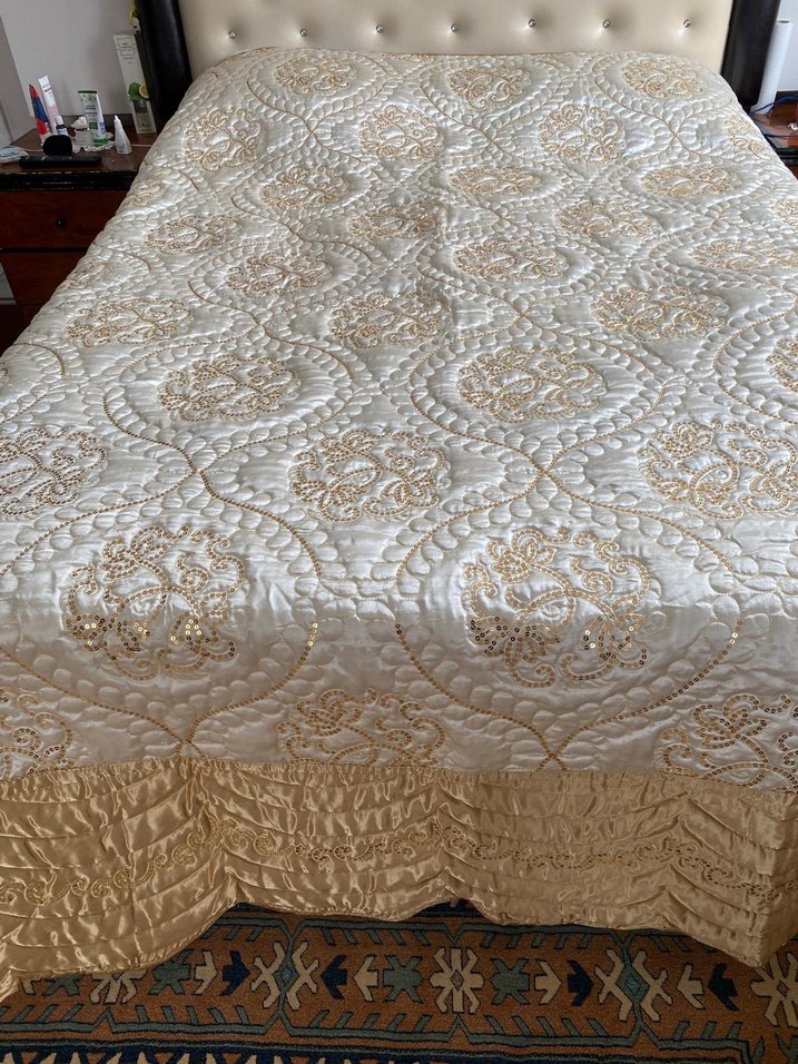 İşlemeli Parlak Beyaz Yatak Örtüsü