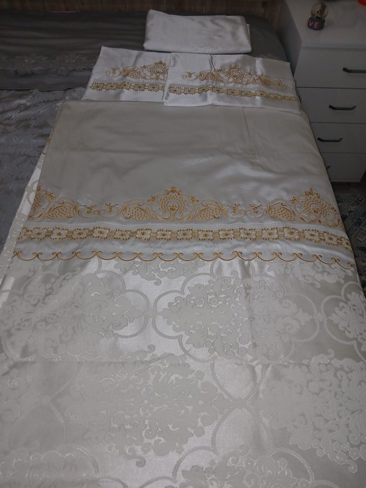 Parlak beyaz renkte, işlemeli desenlere sahip yatak örtüsü. Dekoratif ve şık tasarımıyla yatak odasına zarafet katar. ️