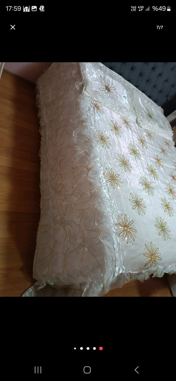 İşlemeli Parlak Beyaz Yatak Örtüsü iki yastık