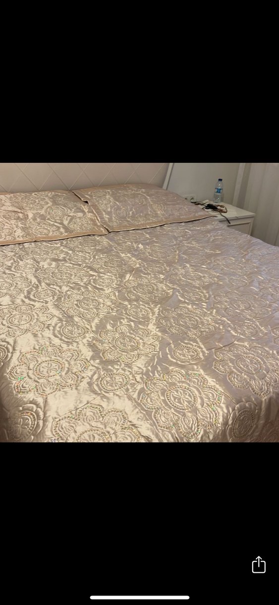Parlak beyaz renkli, işlemeli desenlere sahip yatak örtüsü. Yumuşak ve pürüzsüz dokusuyla şık ve konforlu bir görünüm sunar. ️