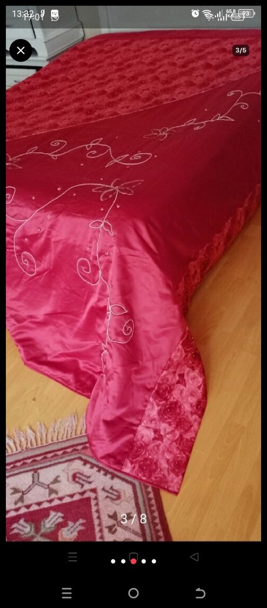 İşlemeli Parlak Pembe Yatak Örtüsü