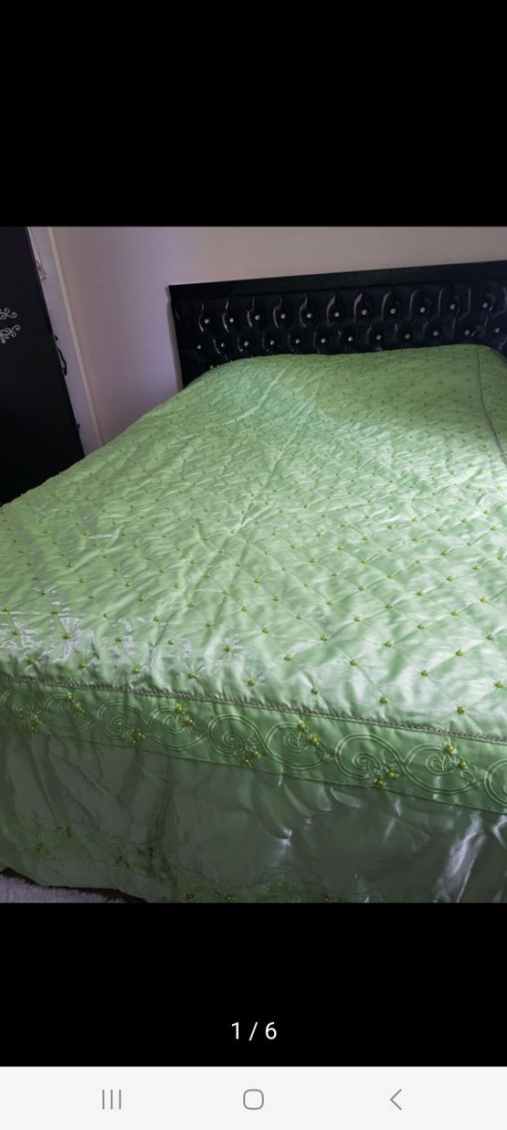 Parlak yeşil kumaştan, işlemeli detaylara sahip yatak örtüsü, yatak odanıza dekoratif bir dokunuş katıyor.260a 260 ölçüsü 2 adet yastigi vardir