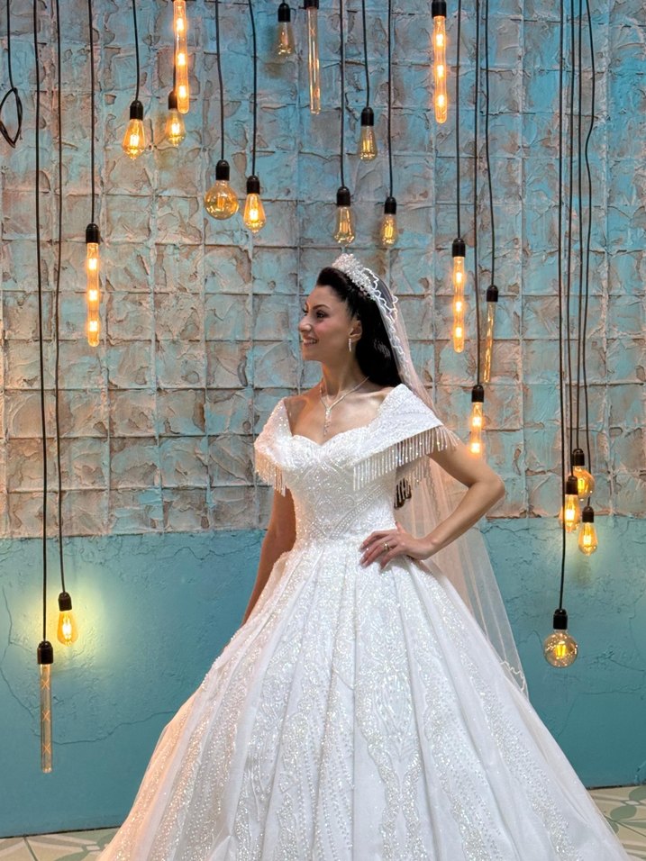 Sadece ilk kez kendim giydim tertemiz herhangi bir kusuru yoktur işlemeli kolları boncuk püsküllü (taç ve duak isteğe göre +1000₺) tarlatanı da mevcuttur fiyatlarda yardımcı olabilirim