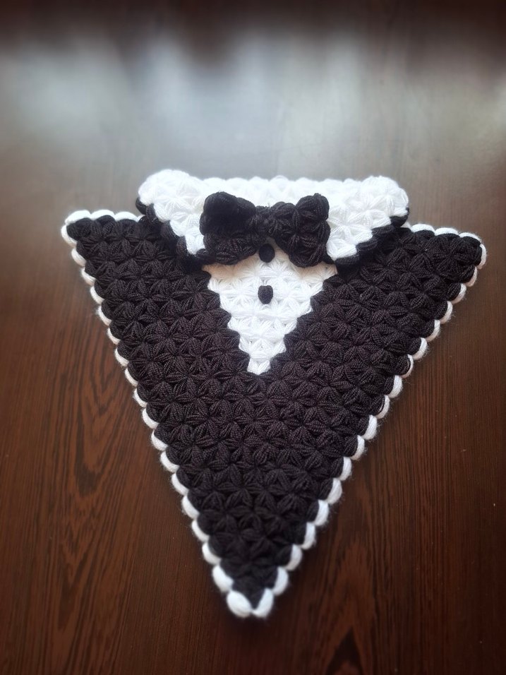 Erkekler için siyah ve beyaz işlemeli, rahat dokulu, gotik tarzda papyon. Sade ama özgün bir görünüm sunar.