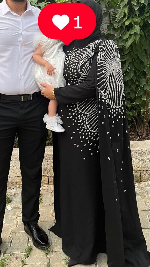 Drapeli, işlemeli siyah uzun kollu ve uzun boy abiye elbise. Notlu yakası ve oturan kesimiyle gotik tarzda, modest bir tasarım sunar.