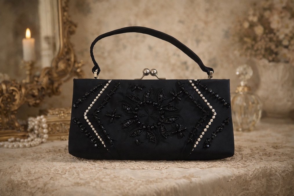İşlemeli Siyah Vintage Kadın Portföy Çanta