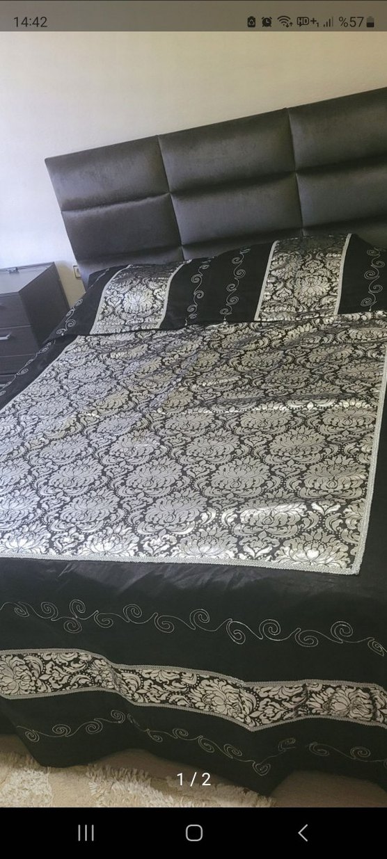 İşlemeli desenlere sahip siyah yatak örtüsü, yatak odanıza klasik bir dokunuş katar. ️az kullanılmıştır. ihtiyaç fazlasi