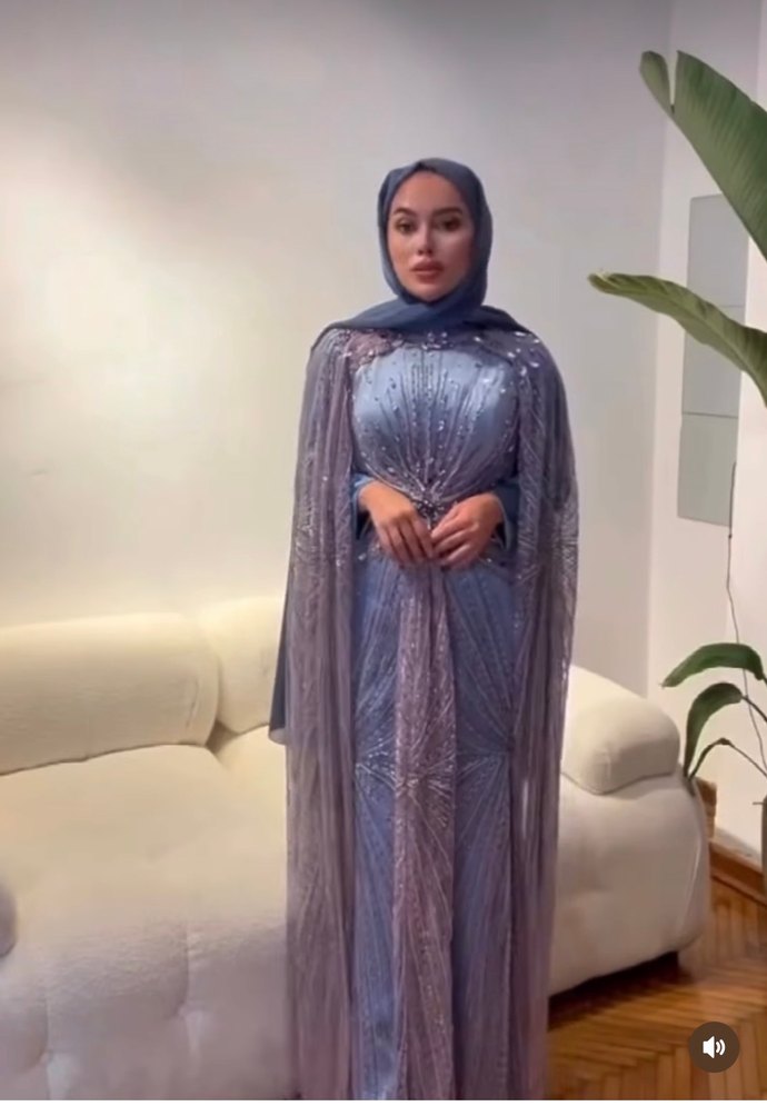 Bu abiye elbise uzun kolludur, işlemeli detaylara sahiptir. Drapeli tasarımı ve rahat kesimiyle mütevazı ve şık düğünler için uygundur. 42 44 bedene uygundur