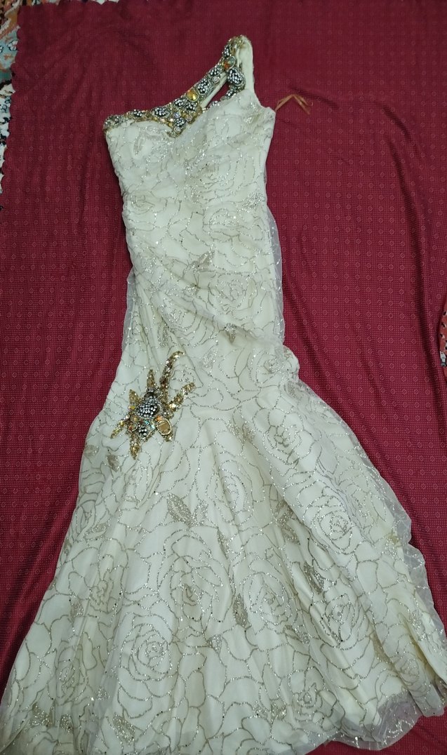 İşlemeli Uzun Beyaz Nişan Elbisesi