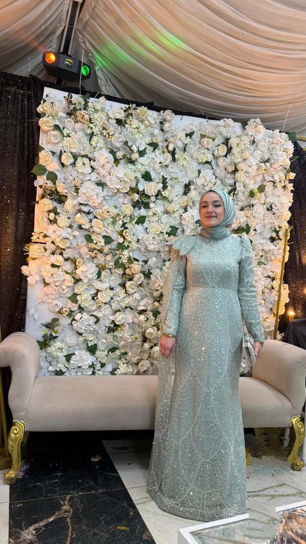 Uzun kollu, yüksek yakalı ve işlemeli detaylara sahip, vücuda oturan abiye elbise. Dökümlü tasarımıyla klasik şıklık sunar, düğünler için uygun. 38/40/42 beden seçeneği ile kiralayabilirsiniz ,kiralama için müsaitlik sorunuz✨