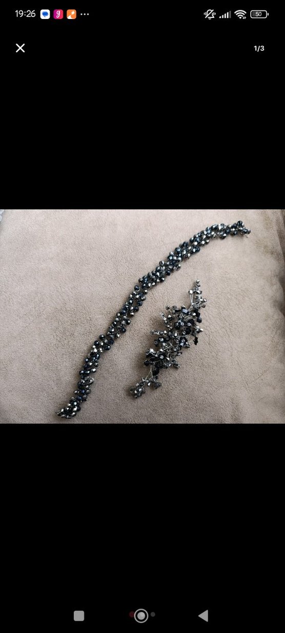 Gri renkte, işlemeli ve boncuklu detaylara sahip saç aksesuarları. Düğünler ve moda tutkunları için uygun. tekli satın alınabilir. uzun olan 300 TL diğeri 200 TL dir