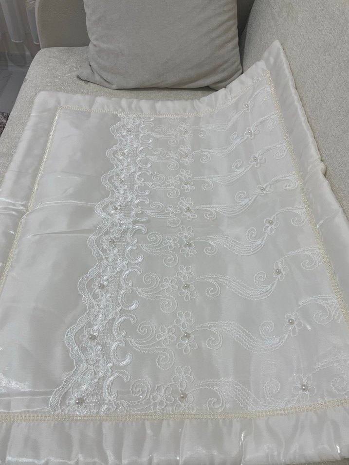Ürün krem renkli incili dantelli şık bir yatak örtüsüdür. 1 kez kullanıldı ihtiyacım olmadığı için satıyorum