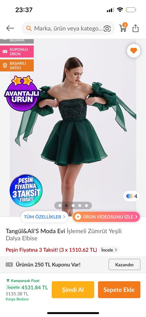 İşlemeli, straplez ve drapeli tasarıma sahip, zümrüt yeşili mini elbise. Sade ve kolsuz, partiler için şık ve göz alıcı bir tercih.
