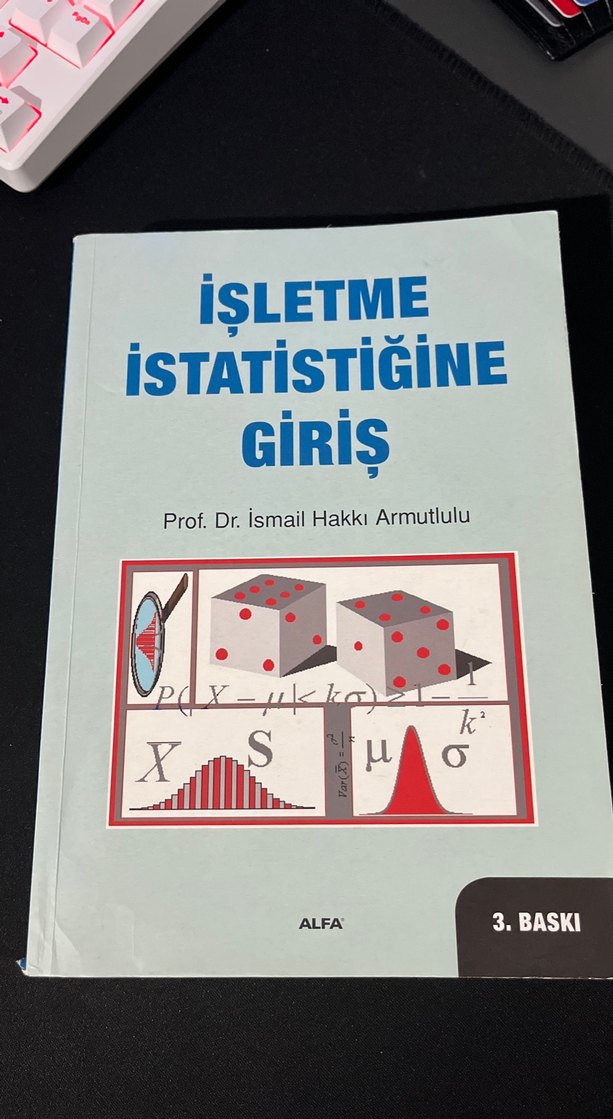 Prof. Dr. İsmail Hakkı Armutlulu tarafından yazılmış, ALFA yayınevinden 3. baskı işletme istatistiğine giriş kitabı.